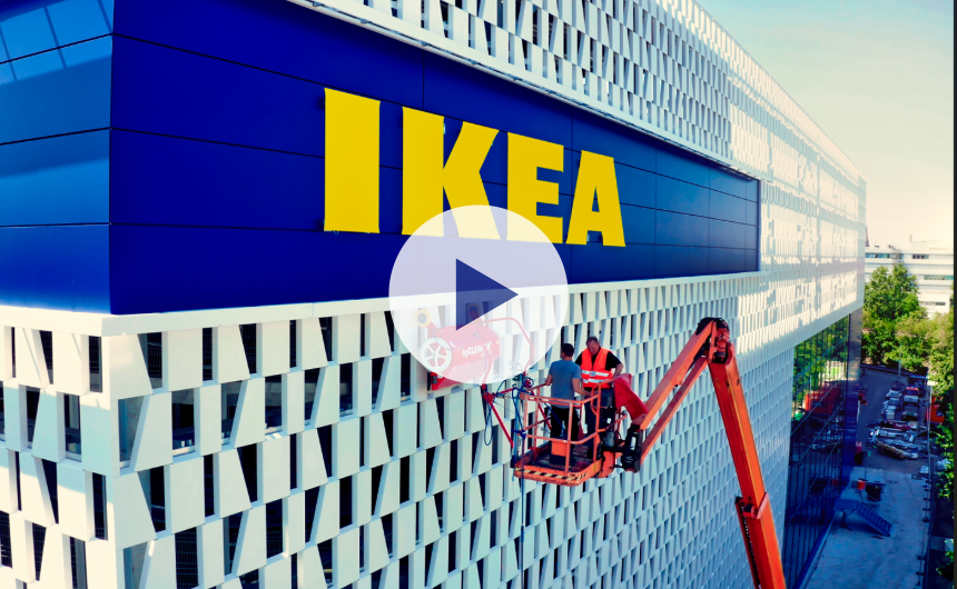 Ook IKEA in Karlsruhe vertrouwt op moderne, machinale gevelreiniging en maakt daarbij gebruik van de krachtige facadeBRUSH v-line. Meer dan 20.000 m² glas- en metalen gevel werd efficiënt, veilig en gelijkmatig gereinigd - voor een duurzaam verzorgd uiterlijk.