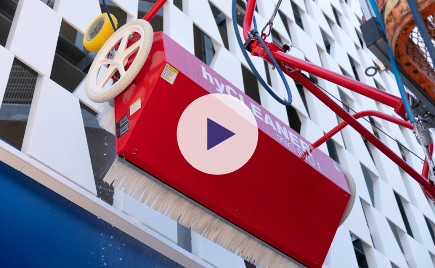 Onze gevelreinigingsmachines kunt u flexibel op verschillende gevels inzetten: ongeacht of het glas-, metaal- of gemengde gevels betreft. Daarbij wordt de machine verticaal ingezet, zodat van boven naar beneden wordt gereinigd.